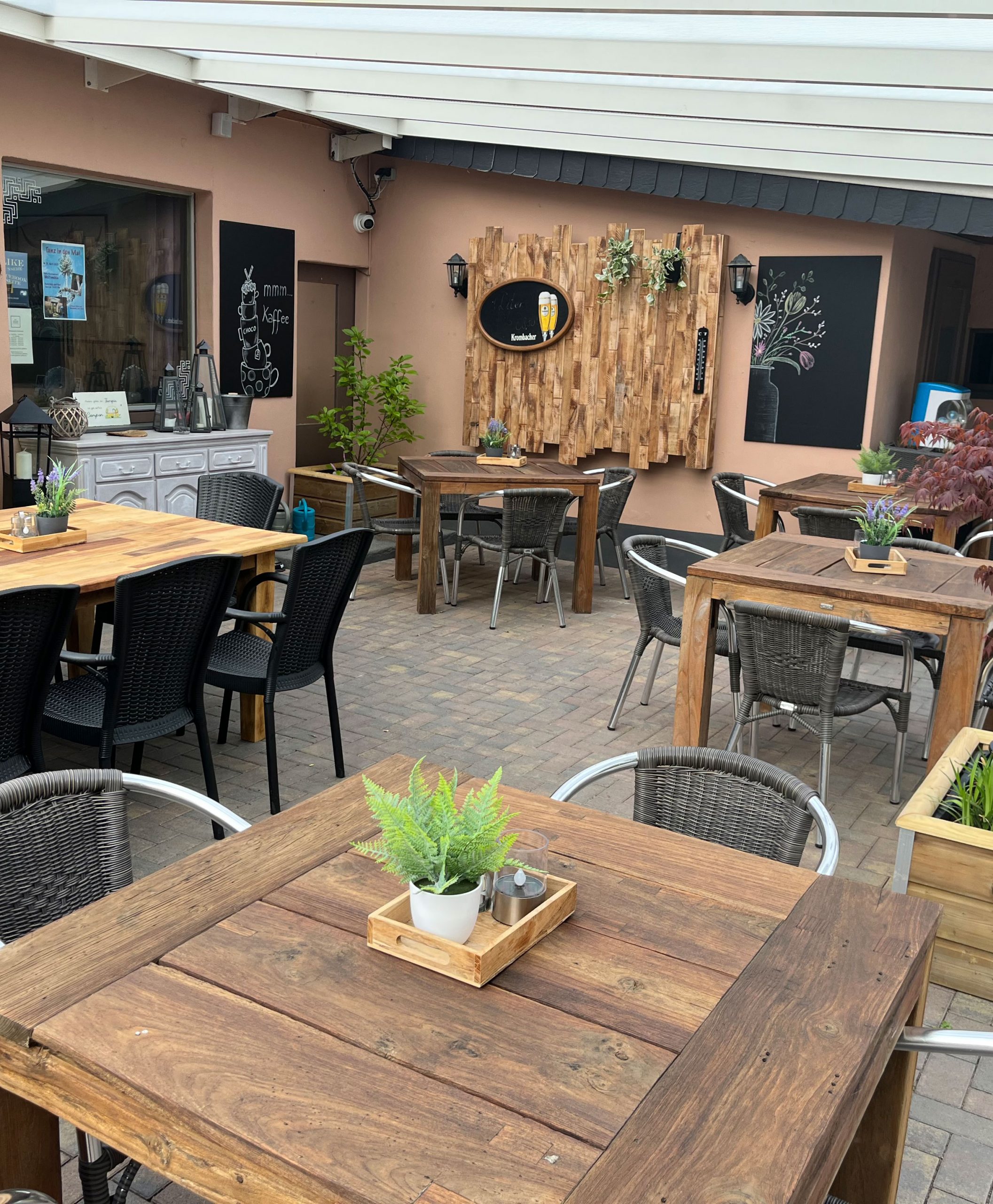 Setzen Sie sich an einen der liebevoll gestalteten Tische und erwählen Sie sich Ihr Lieblingsgetränk – sei es ein erfrischendes, gekühltes Bier oder eine duftende Tasse Kaffee. Der Klang des sanften Windes, das Zwitschern der Vögel und das Lächeln unserer freundlichen Mitarbeiter schaffen eine unvergessliche Kulisse für Ihre Auszeit.